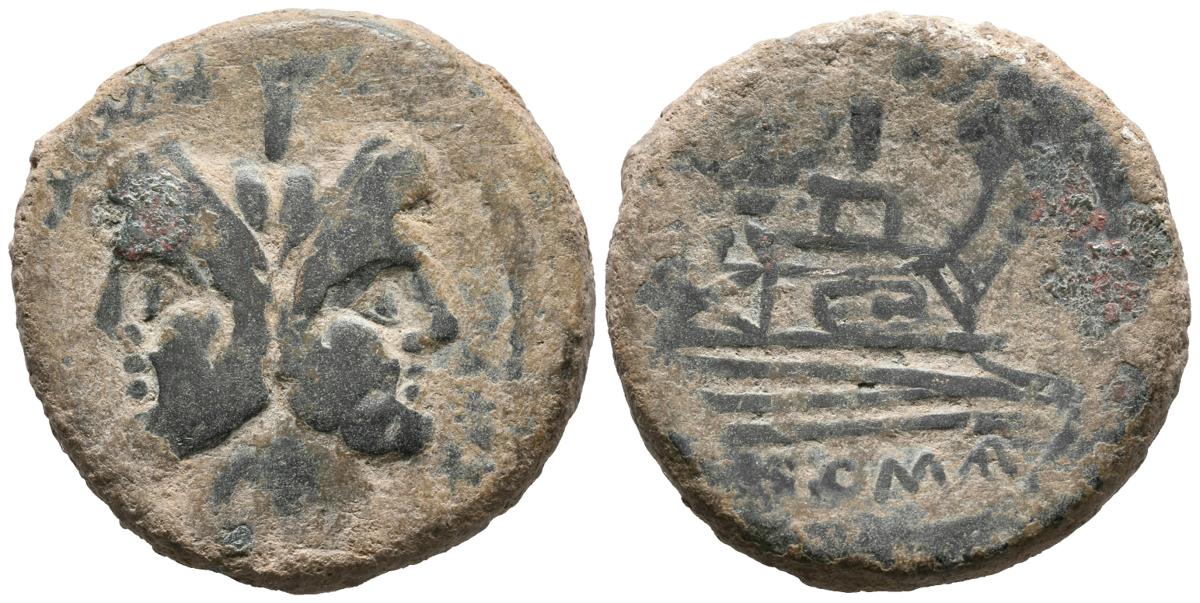 ACUÑACIONES ANONIMAS. As. (Ae. 28,79g/33mm). 211 a.C. Roma. (Crawford 56/2). Anv: Cabeza de Jano bifronte, encima I. Rev: Proa a derecha, encima I, debajo leyenda: ROMA. MBC-.