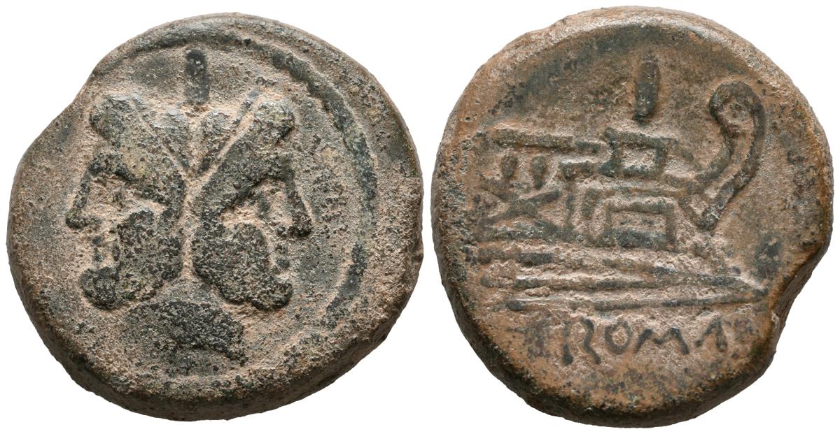 ACUÑACIONES ANONIMAS. As. (Ae. 37,00g/34mm). 211 a.C. Roma. (Crawford 56/2). Anv: Cabeza de Jano bifronte, encima I. Rev: Proa a derecha, encima I, debajo leyenda: ROMA. MBC.