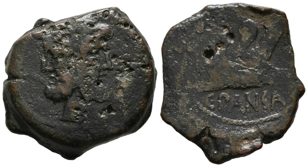 GENS VIBIA. As. (Ae. 16,85g/30mm). 90 a.C. Roma. (Crawford 342/7). Anv: Cabeza laureada de Jano bifronte. Rev: Tres proas a derecha, encima leyenda: ROMA, debajo leyenda: C PANSA. MBC-.