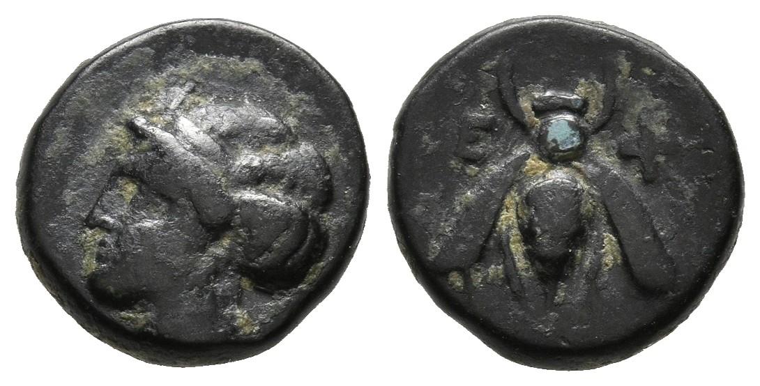 JONIA, Efesos. Ae (Ae. 1,42g/11mm). 305-288 a.C. (SNG Von Aulock 1839). Anv: Cabeza de Artemisa a izquierda. Rev: Abeja entre letras griegas. MBC.