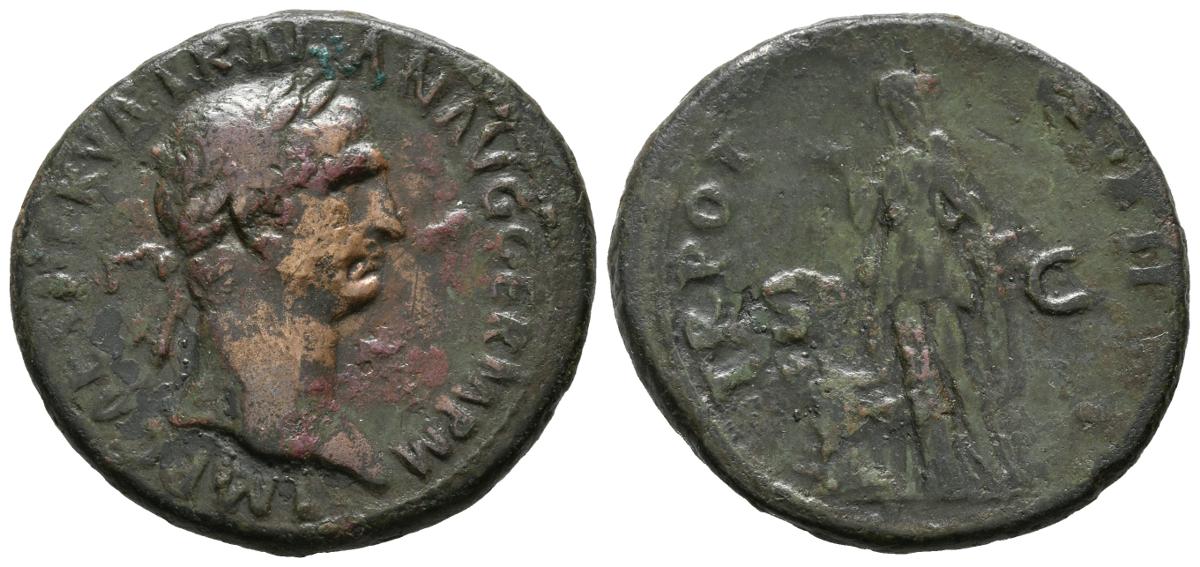 TRAJANO. As. (Ae. 10,92g/29mm). 99 d.C. Roma. (RIC 392). Anv: Cabeza laureada de Trajano a derecha, alrededor leyenda: IMP CAES NERVA TRAIAN AVG GERM P M. Rev: Pietas estante a izquierda alzando mano derecha, a sus pies altar, entre S-C, alrededor leyenda: TR POT COS II. BC+.