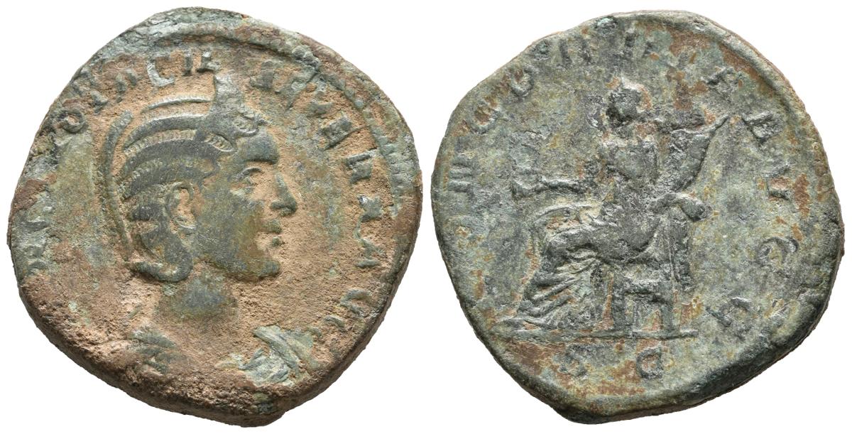 OCTACILIA SEVERA. Sestercio (Ae. 17,82g/29mm). 244-249 d.C. Roma. (RIC 203a). Anv: Busto diademado y drapeado de Otacilia Severa a derecha, alrededor leyenda: MARCIA OTACIL SEVERA AVGG. Rev: Concordia sentada a izquierda con pátera y cornucopia, en exergo: SC, alrededor leyenda: CONCORDIA AVGG. BC+.