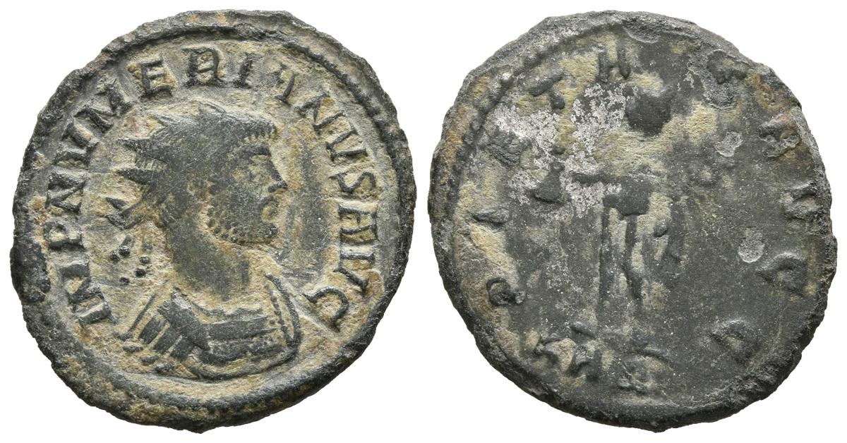 NUMERIANO. Antoniniano (Ae. 2,65g/20mm). 283-284 d.C. Roma. (RIC 416). Anv: Busto rradiado y con coraza de Numeriano a derecha, alrededor leyenda: IMP NVMERIANVS PF AVG. Rev: Mercurio parado a la izquierda sostiene caduceo, en exergo: KAD, alrededor leyenda: PIETAS AVGG. MBC/MBC-.