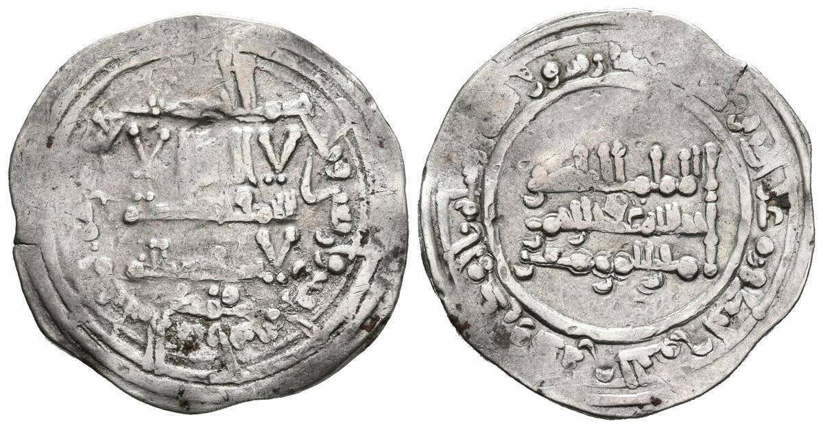 CALIFATO DE CÓRDOBA. Abd al- Rahman III al-Nasir. Dírham (Ar. 3.22g/23mm). 344H. Madinat al-Zahra. Con Muhammad en I.A. (Vives 427; Frochoso 344.6d). MBC.