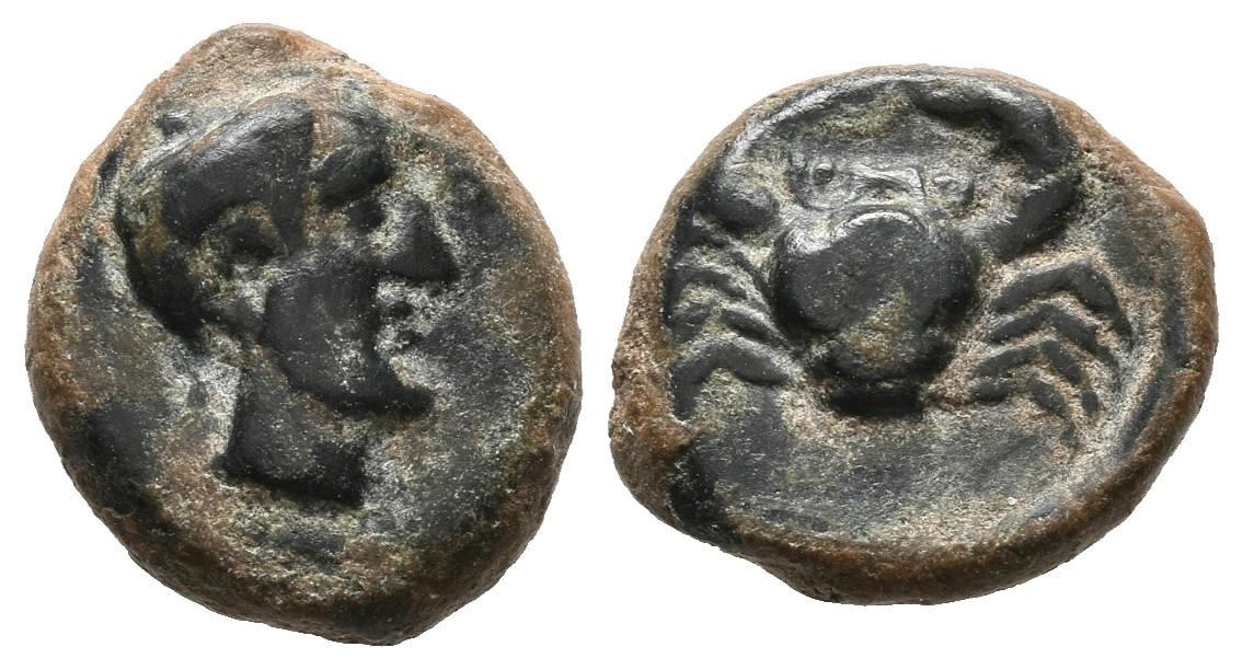 SICILIA, Montya. Ae (Ae. 1,89g/11mm). 490-487 a.C. (HGC 2, 945). Anv: Cabeza masculina joven a derecha. Rev: Cangrejo. MBC. Escasa.