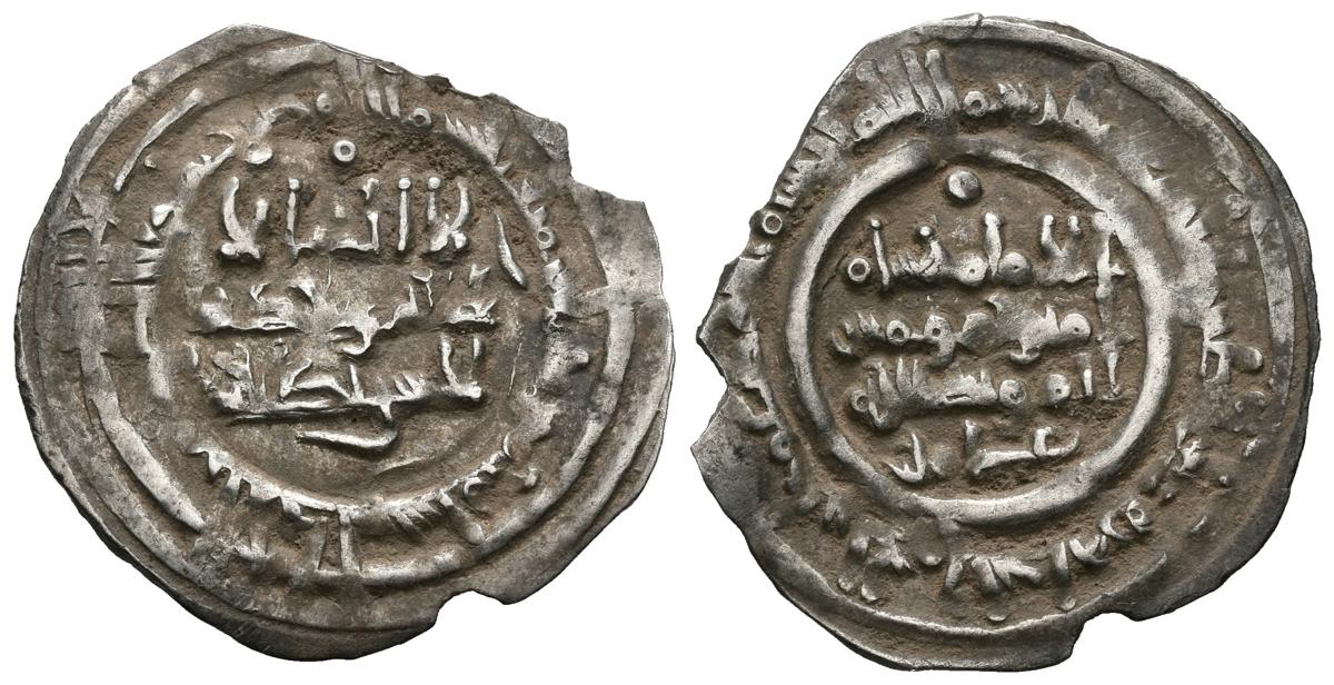 CALIFATO DE CÓRDOBA. Hisham II al-Muayyad. Dírham (Ar. 1,68g/24mm). 385H. Al-Andalus. Con Amir en II.A. (Vives 520). MBC+. Recorte marginal