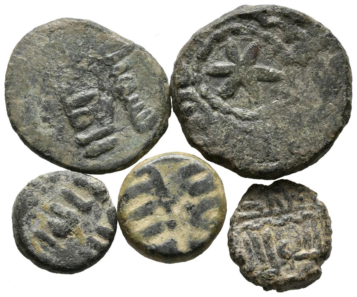 HISPANO ÁRABE. Bonito conjunto formado por 5 felus anónimos 4 de ellos sin ceca ni fecha y 1 con ceca de al-Andalus del periodo de los Gobernadores Omeyas de al-Andalus. Diferentes estados de conservación. A EXAMINAR.