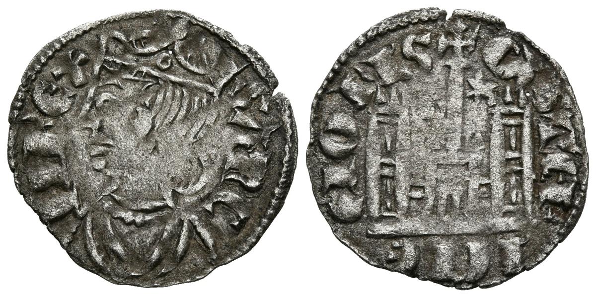 SANCHO IV (1284-1295). Cornado. (Ve. 0,77g/20mm). Murcia. (FAB-300). Anv: Busto coronado de Sancho IV a izquierda, alrededor leyenda: SANCII REX. Rev: Castillo con cruz sobre vástago central, entre ella M y estrella, alrededor leyenda: CASTELLE E LEGIONIS. MBC+.