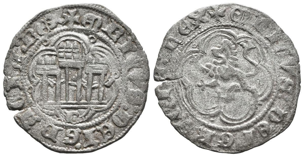 ENRIQUE III (1390-1406). Blanca. (Ve. 2,04g/22mm). Burgos. (FAB 597). Anv: Castillo de tres torres, debajo B, alrededor leyenda: ENRICVS DEI GRACIA REX. Rev: León rampante a izquierda dentro de grafila lobular, alrededor leyenda: ENRICVS DEI GRACIA REX. MBC+.