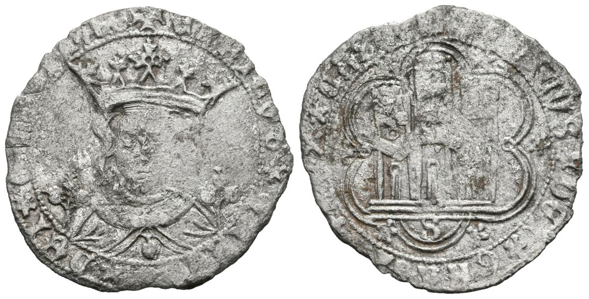 ENRIQUE IV (1454-1474). Cuartillo (Ve. 2,21g/26mm). S/D. Sevilla. (FAB-755.8). Anv: busto coronado del rey de frente con ramas de granado a ambos lados y dentro de grafila circular. Rev: castillo, debajo marca de ceca S. Leyenda: ENRICVS DEI GRACIA REX CAS. MBC-. Vellón rico.
