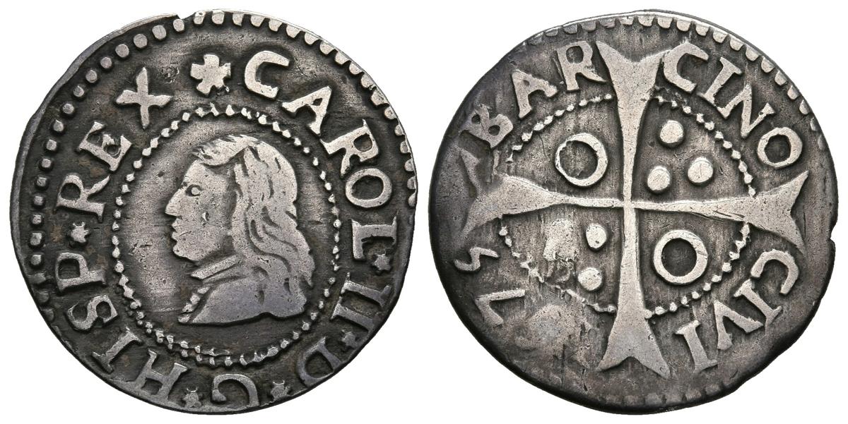 CARLOS II (1665-1700). 1 Croat. (Ar. 2,34g/21mm). 1675. Barcelona. (Cal-2019-205). MBC. Bonito tono.