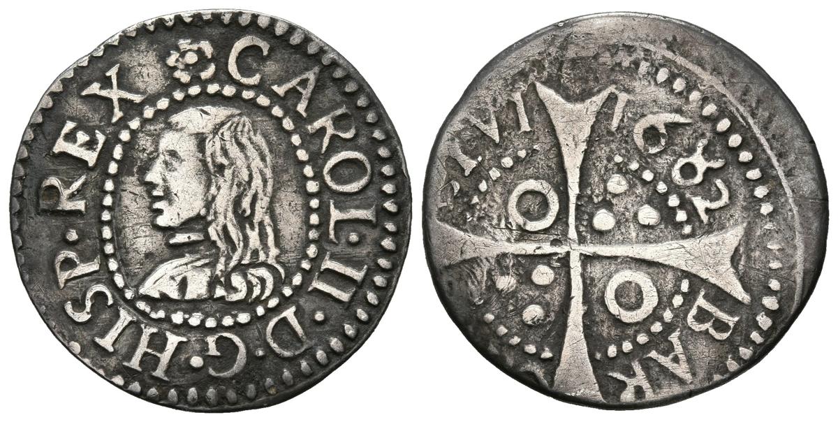 CARLOS II (1665-1700). 1 Croat. (Ar. 2,11g/21mm). 1682. Barcelona. (Cal-2019-209). MBC+/MBC.