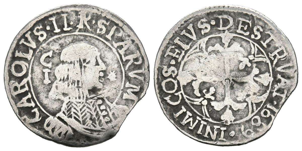 CARLOS II (1665-1700). 1 Real. (Ar. 2,09g/19mm). 1689. Cagliari. (Vicenti 221). MBC-. Cospel faltado.