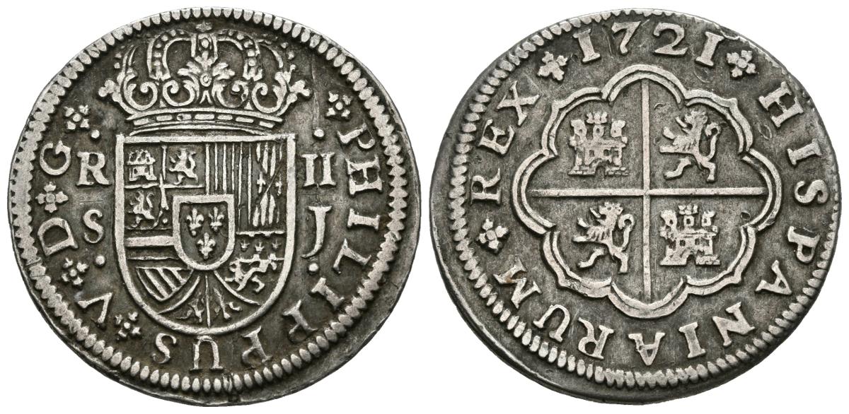 FELIPE V (1700-1749). 2 Reales (Ar. 5,62g/26mm). 1721. Sevilla J. (Cal-2019-979). MBC.