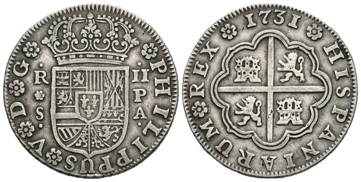 FELIPE V (1700-1749). 2 Reales (Ar. 5,66g/26mm). 1731. Sevilla PA. (Cal-2019-987). MBC.