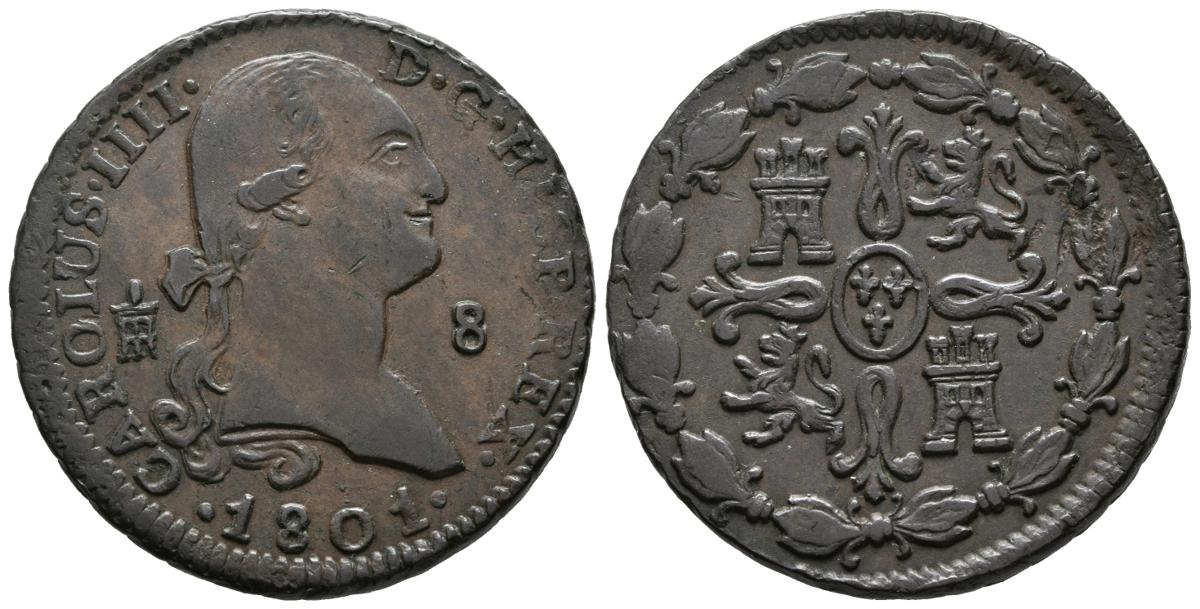 CARLOS IV (1788-1808). 8 Maravedís. (Ae. 12,00g/31mm). 1801. Segovia. (Cal-2019-78). MBC+.