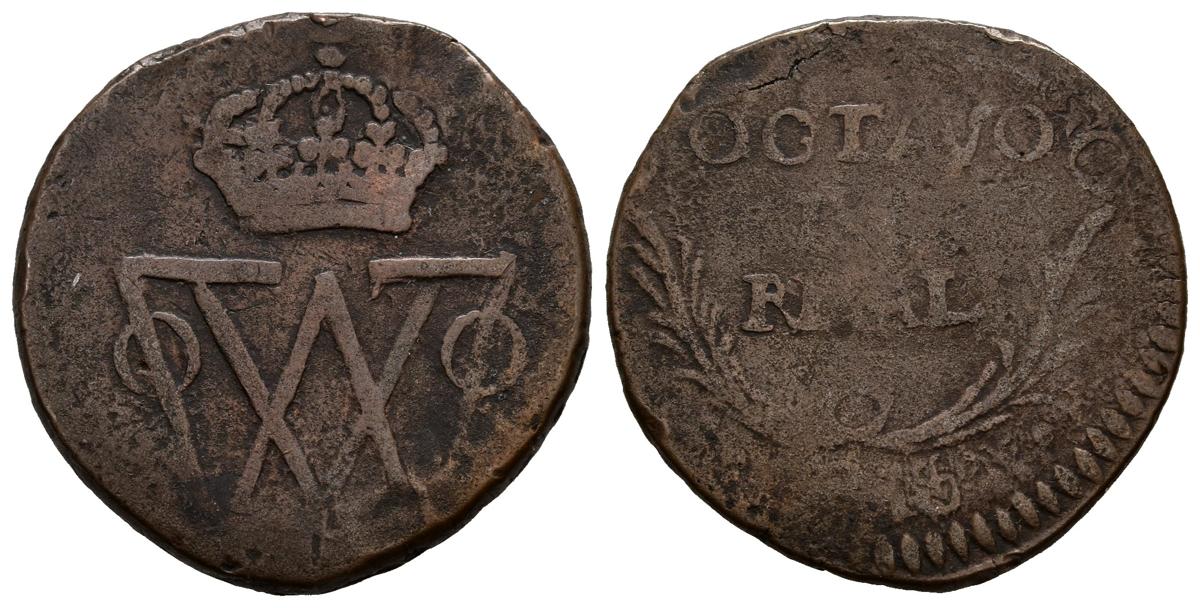 FERNANDO VII (1808-1833). 1/8 de Real (Ae. 4,60g/22mm). 1815. Durango. (Cal-2019-73). BC+/BC.