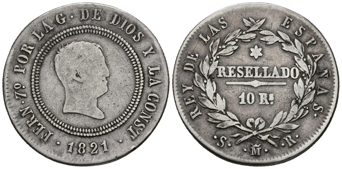 FERNANDO VII (1808-1833). 10 Reales. (Ar. 12,94g/33mm). 1821. Madrid SR. (Cal-2019-1088). BC/MBC-.