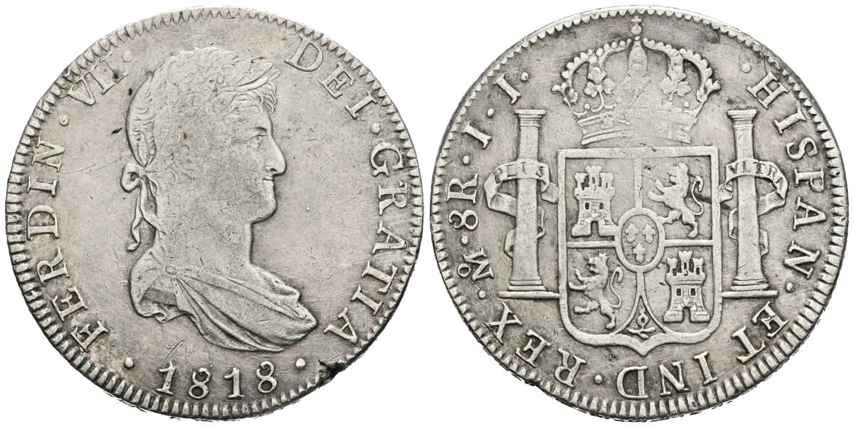 FERNANDO VII (1808-1833). 8 Reales. (Ar. 26,86g/40mm). 1818. México JJ. (Cal-2019-1333). MBC. Golpe en canto. Rayitas.