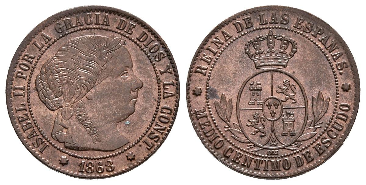 ISABEL II (1833-1868). 1/2 Céntimo de Escudo (Ae. 1,28g/16mm). 1868. Sevilla. OM. (Cal-2019-212). SC-.