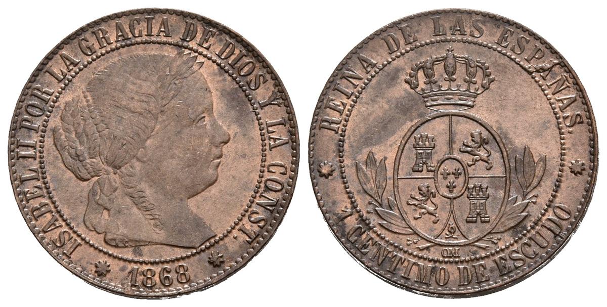 ISABEL II (1833-1868). 1 Céntimo de Escudo (Ae. 2,55g/86mm). 1868. Barcelona. OM. (Cal-2019-216). EBC.