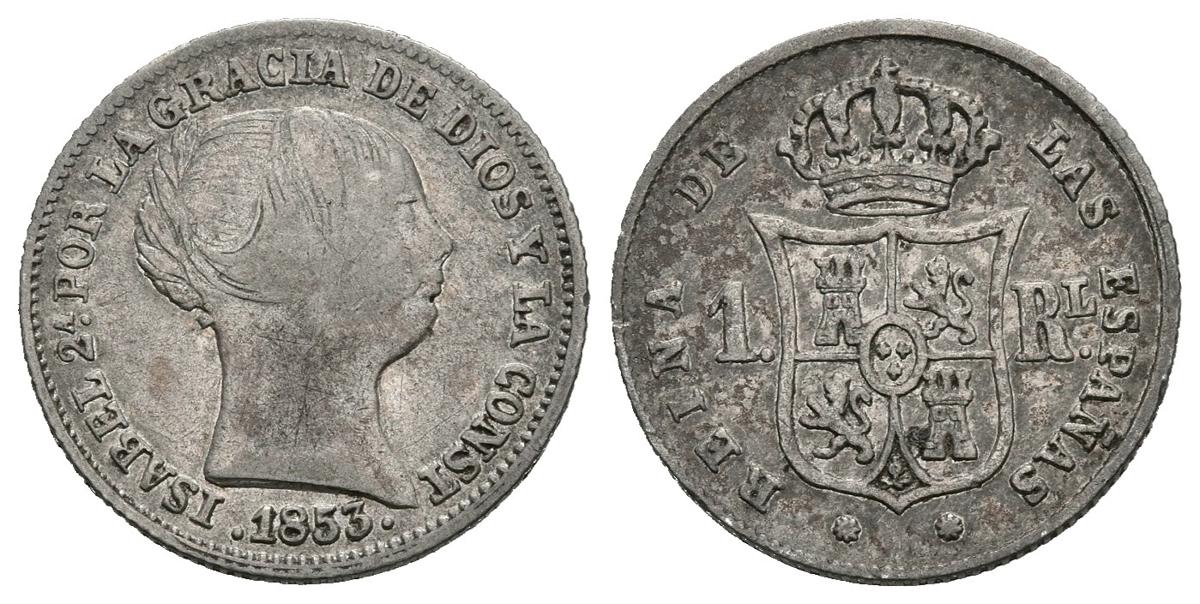 ISABEL II (1833-1868). 1 Real. (Ar. 1,24g/15mm). 1853. Barcelona. (Cal-2019-276). MBC-/MBC.
