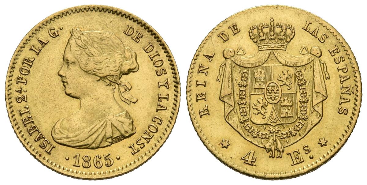 ISABEL II (1833-1868). 4 Escudos. (Au. 3,36g/18mm). 1865. Madrid. (Cal-2019-688). EBC.