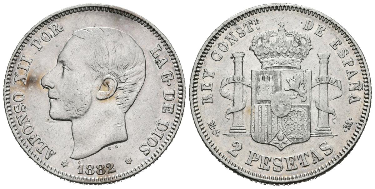 ALFONSO XII (1874-1885). 2 Pesetas. (Ar. 9,94g/27mm). 1882 *18-82. Madrid MSM. (Cal-2019-32). MBC.