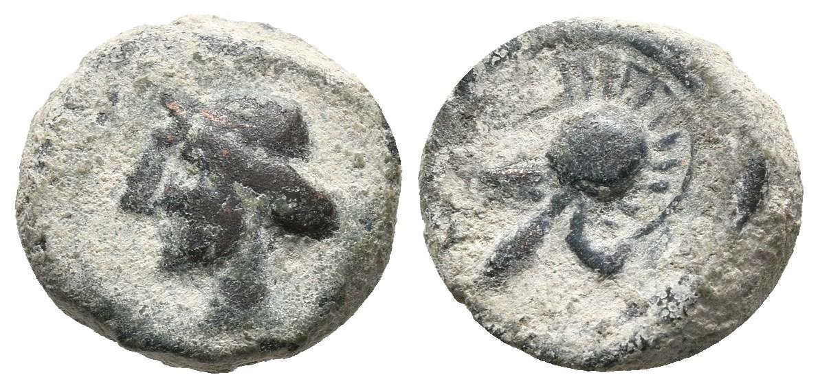 CARTAGONOVA (Cartagena, Murcia). 1/4 Calco. (Ae. 2,19g/12mm). 220-215 a.C. (FAB-521). Anv: Cabeza de Tanit a izquierda. Rev: Casco a izquierda. MBC.