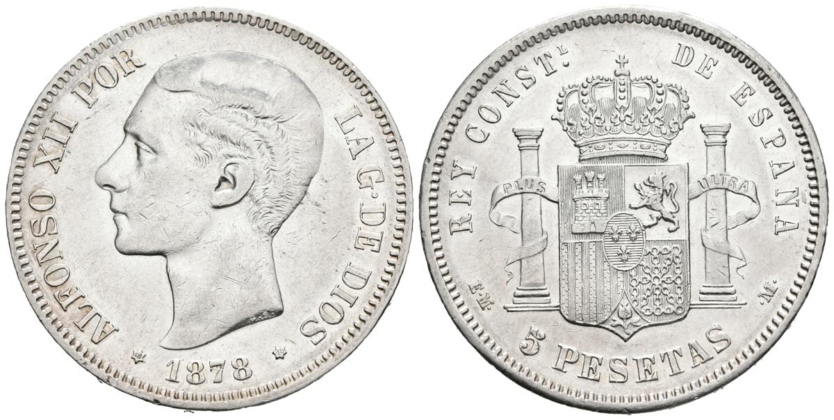 ALFONSO XII (1874-1885). 5 Pesetas. (Ar. 24,93g/37mm). 1878 *18-78. Madrid DEM. (Cal-2019-39). MBC+. Marquitas.