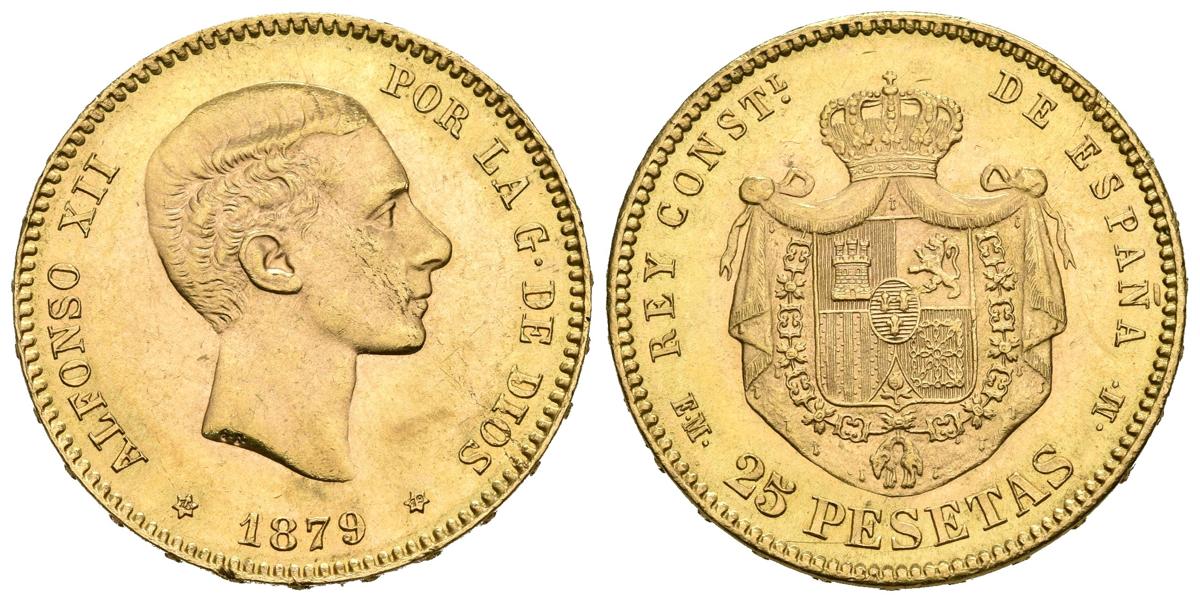 ALFONSO XII (1874-1885). 25 Pesetas. (Au 8,08g/24mm). 1879 *18-79. Madrid EMM. (Cal-2019-74). EBC.