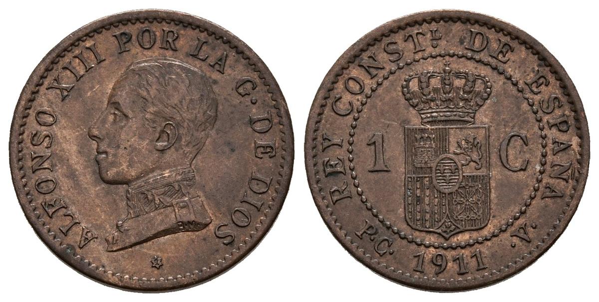 ALFONSO XIII (1885-1931). 1 Céntimo. (Ae. 1,01g/15mm). 1911 *1. Madrid PCV (Cal-2019-3). EBC*. Muy escasa.