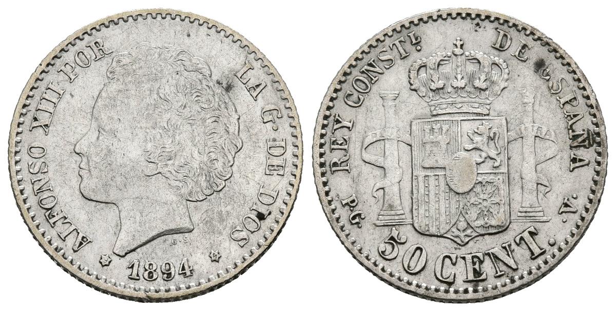 ALFONSO XIII (1885-1931). 50 Céntimos (Ar. 2,51g/18mm). 1894 *9-4. Madrid PGV. (Cal-2019-43). EBC-/MBC.