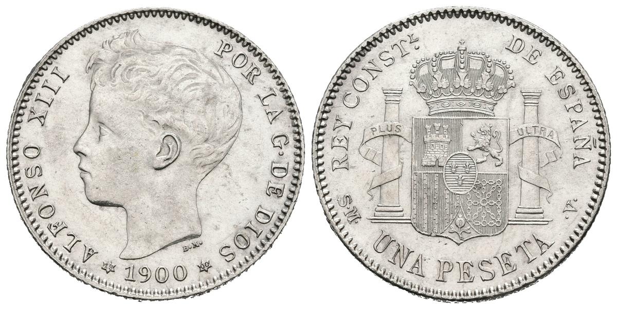 ALFONSO XIII (1885-1931). 1 Peseta. (Ar. 5,00g /23mm). 1900 *19-00. Madrid SMV. (Cal-2019-59). SC-. Brillo original.