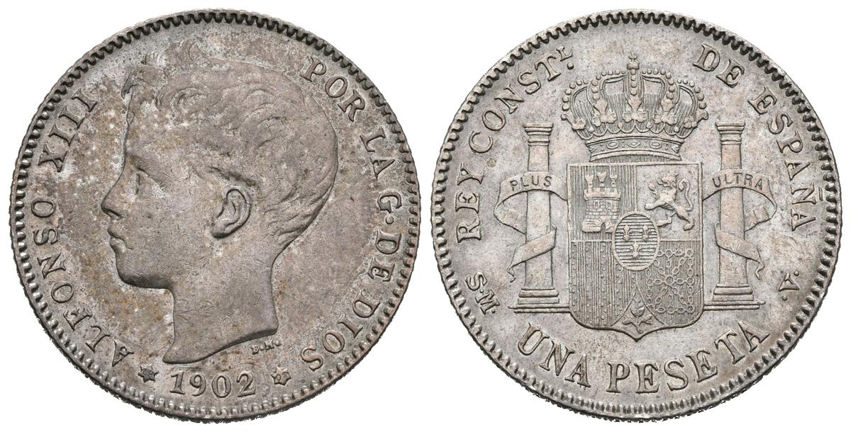 ALFONSO XIII (1885-1931). 1 Peseta. (Ar. 4,99g/23mm). 1902 *19-02. Madrid SMV. (Cal-2019-64). EBC. Bonito tono.