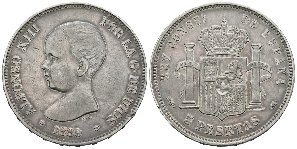 ALFONSO XIII (1885-1931). 5 Pesetas. (Ar. 24,88g /37mm). 1889 *18-89. Madrid MPM. (Cal-2019-93). MBC+.