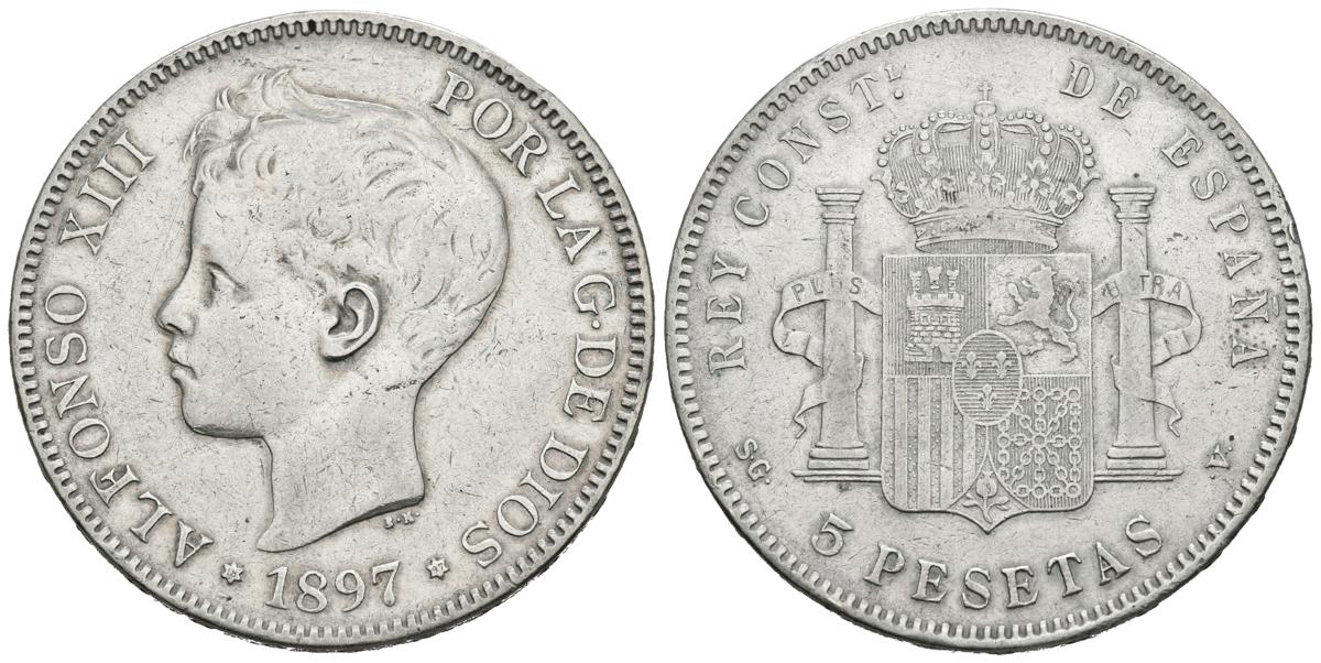 ALFONSO XIII (1885-1931). 5 Pesetas. (Ar. 24,86g /37mm). 1897 *18-97. Madrid SGV. (Cal-2019-107). MBC+.