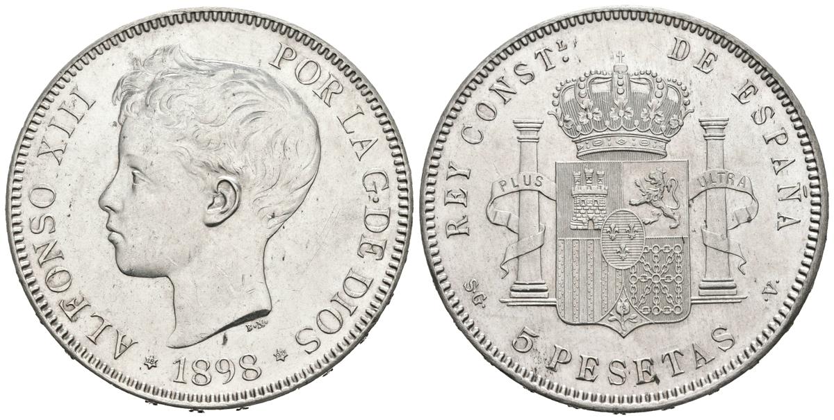 ALFONSO XIII (1885-1931). 5 Pesetas. (Ar. 25,28g/37mm). 1898 *18-98. Madrid SGV. (Cal-2019-109). SC-. Leves marquitas. Brillo original.