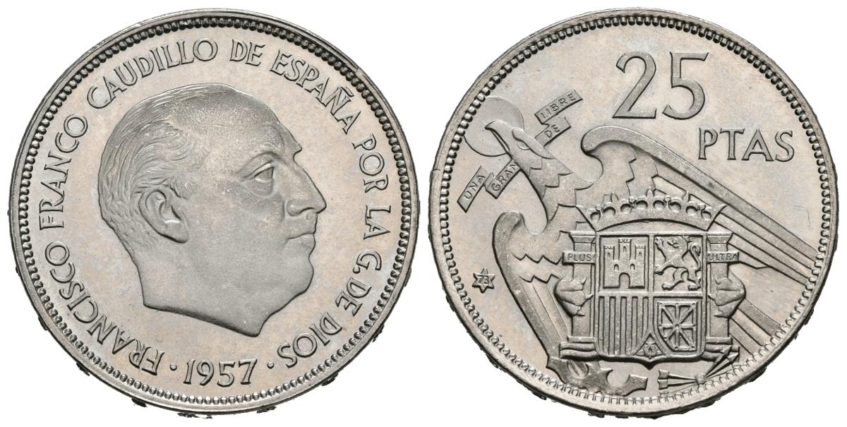 ESTADO ESPAÑOL (1936-1975). 25 Pesetas. (Ni. 8,59g/27mm). 1957 *73. Madrid. (Cal-2019-128). SC. Brillo original.