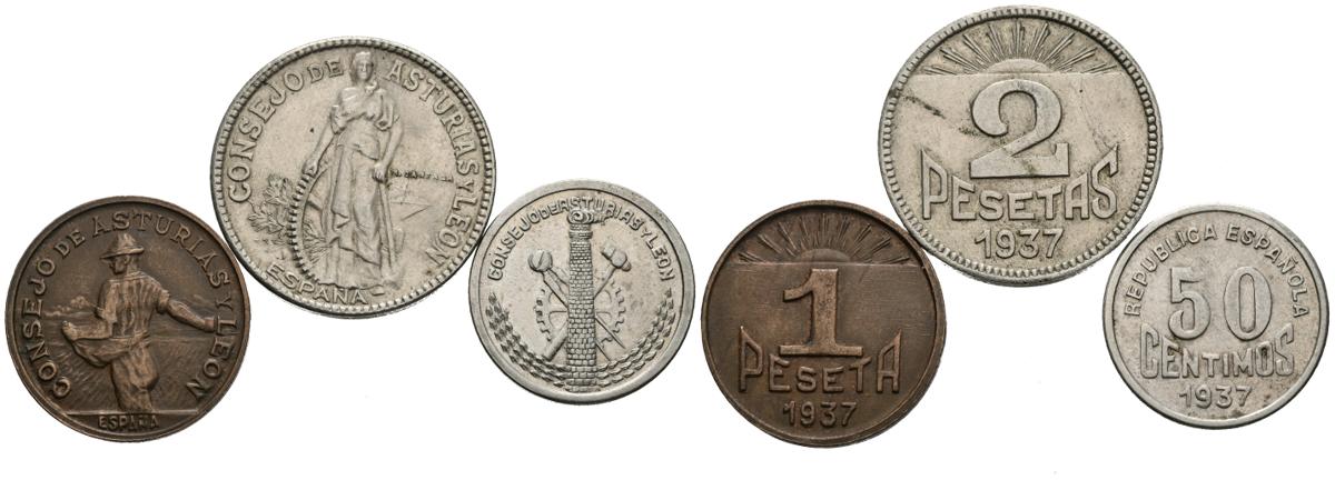 CONSEJO DE ASTURIAS Y LEÓN (1936-1939). Serie de 3 valores: 50 Céntimos, 1 y 2 Pesetas. 1937. (Cal-2019-8/9/10). MBC+