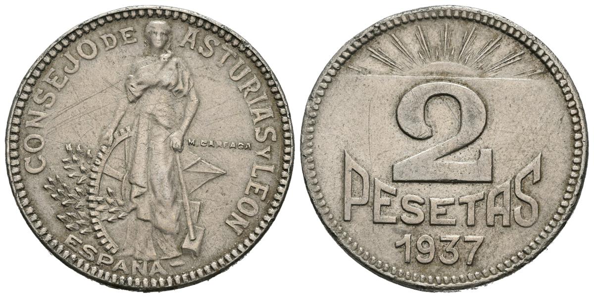 CONSEJO DE ASTURIAS Y LEÓN. 2 Pesetas (Cu-Ni.7,96g/27mm).1937.(Cal-2019-10). MBC.