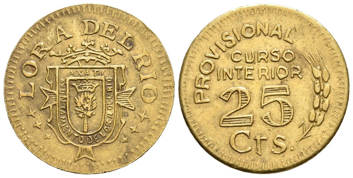 LORA DEL RÍO (Sevilla). 25 Céntimos (La. 3.57g/23mm). S/D. 1936-1939. (Cal-2019-44). MBC+. Escasa.