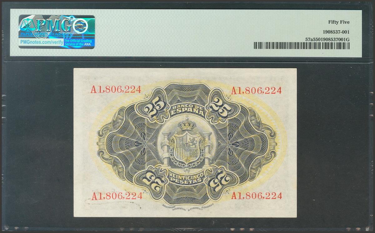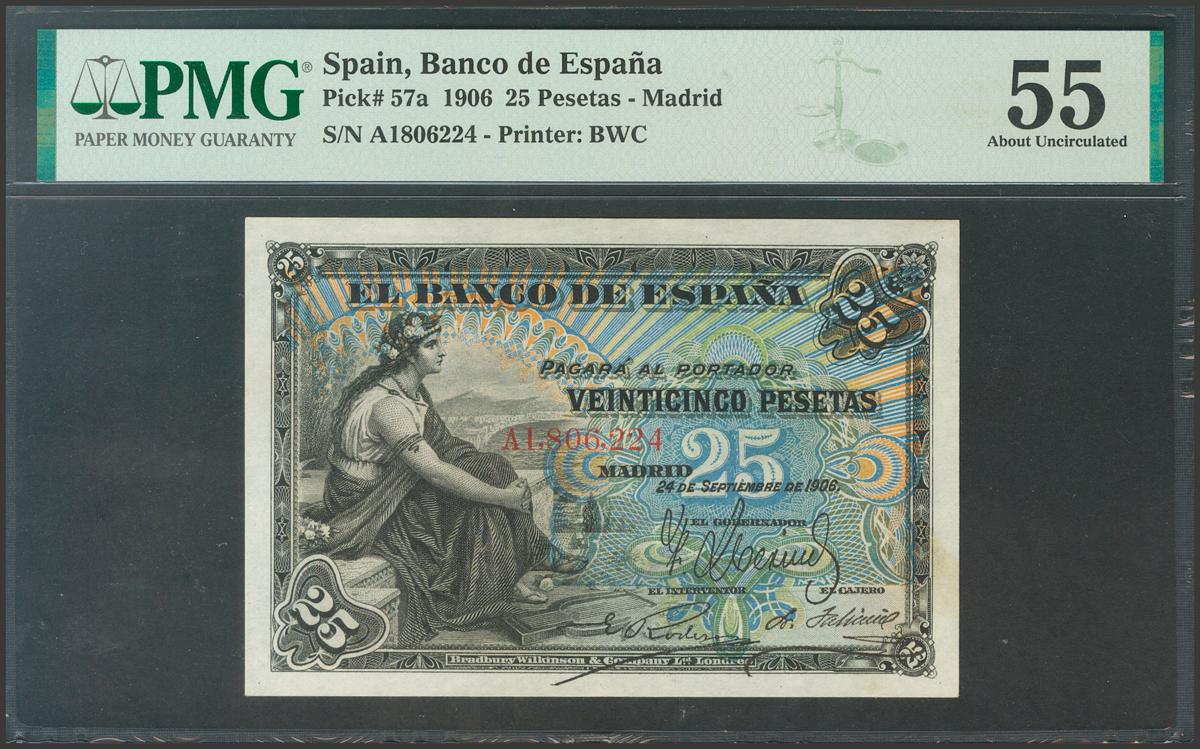 25 Pesetas. 24 de Septiembre de 1906. Serie A. (Edifil 2017: 314a). EBC+. Encapsulado PMG55.