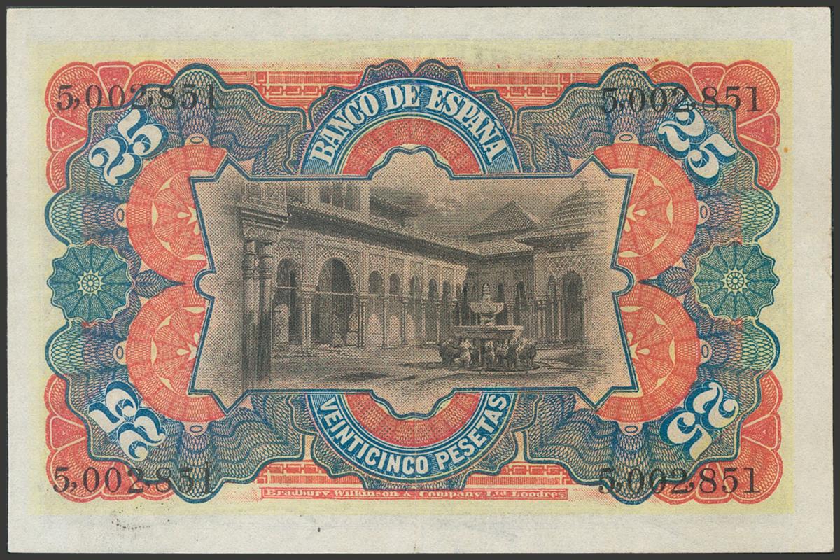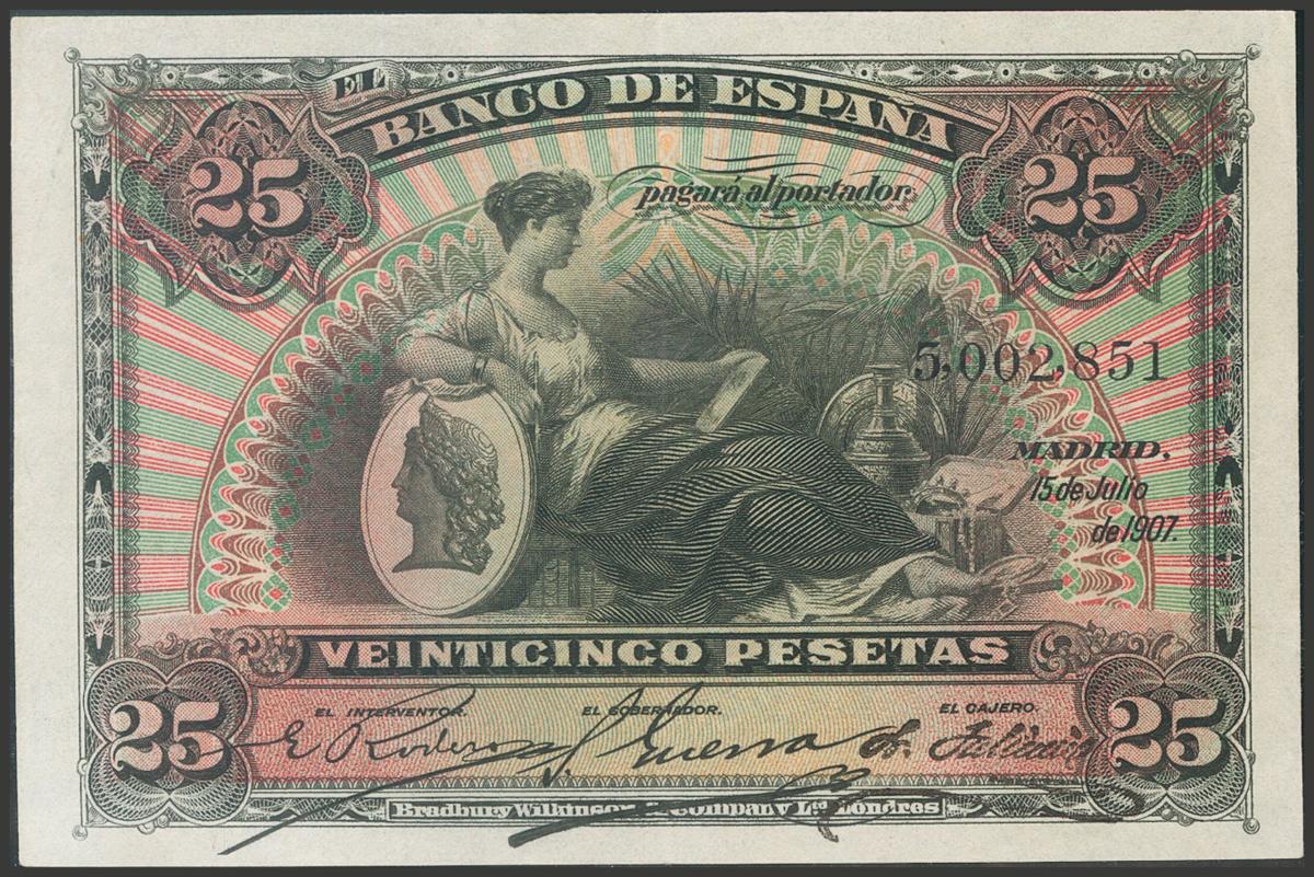 25 Pesetas. 15 de Julio de 1907. Sin serie. (Edifil 2017: 318). Conserva parte del apresto original. MBC+.