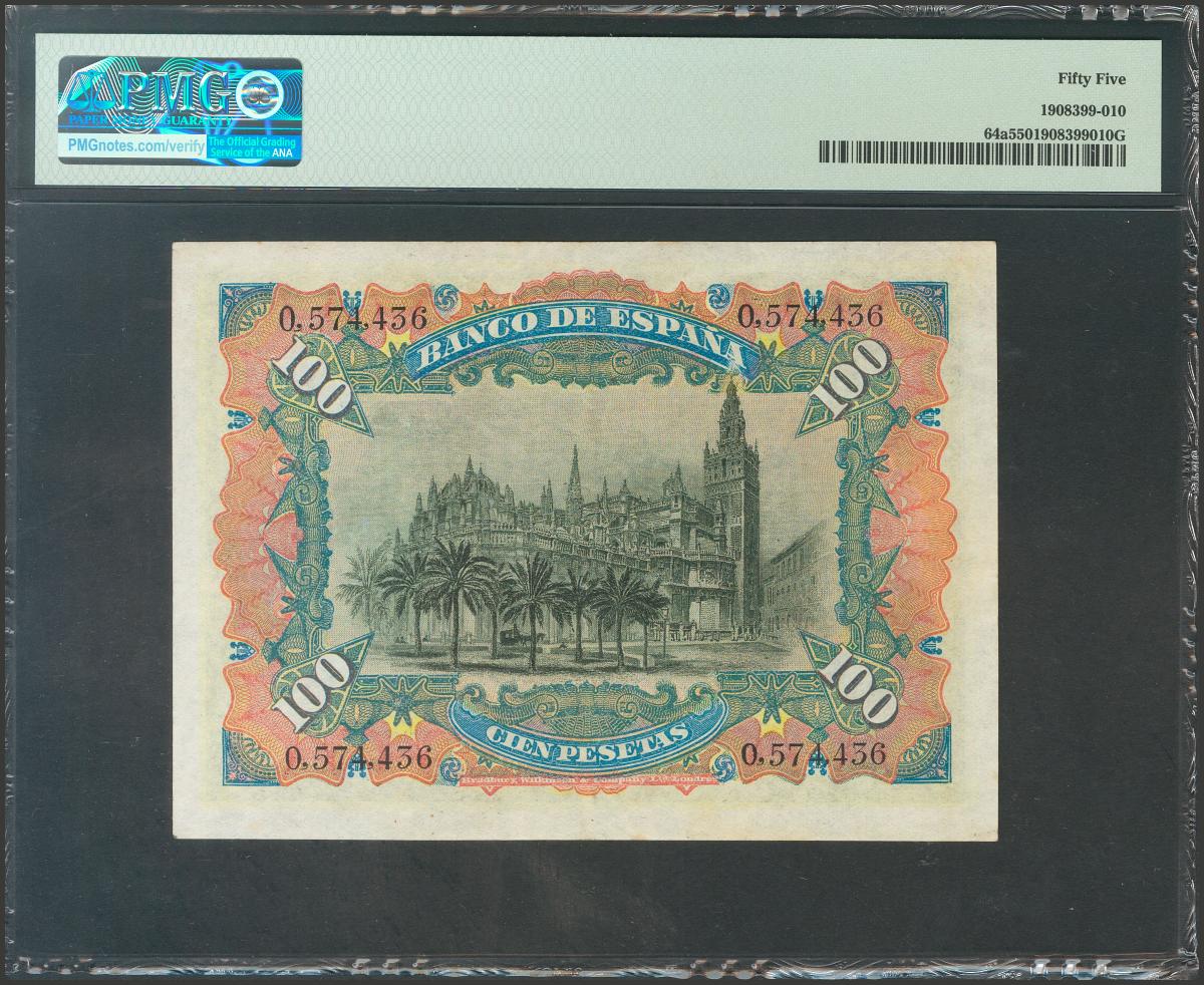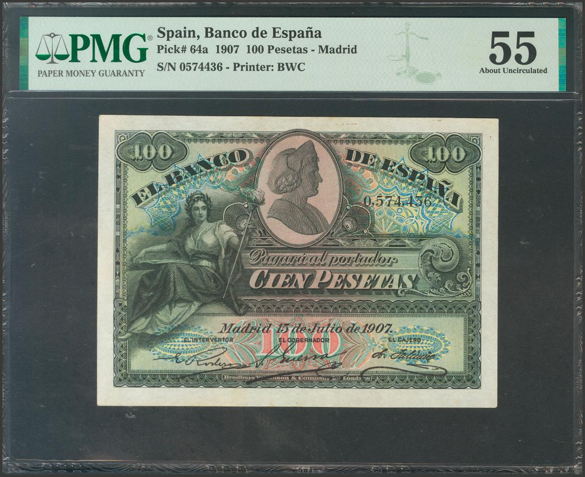 100 Pesetas. 15 de Julio de 1907. Sin serie. (Edifil 2017: 320). EBC+. Encapsulado PMG55.