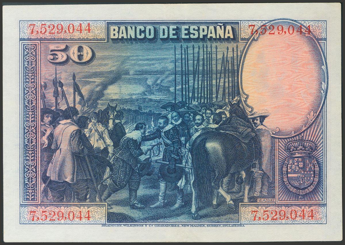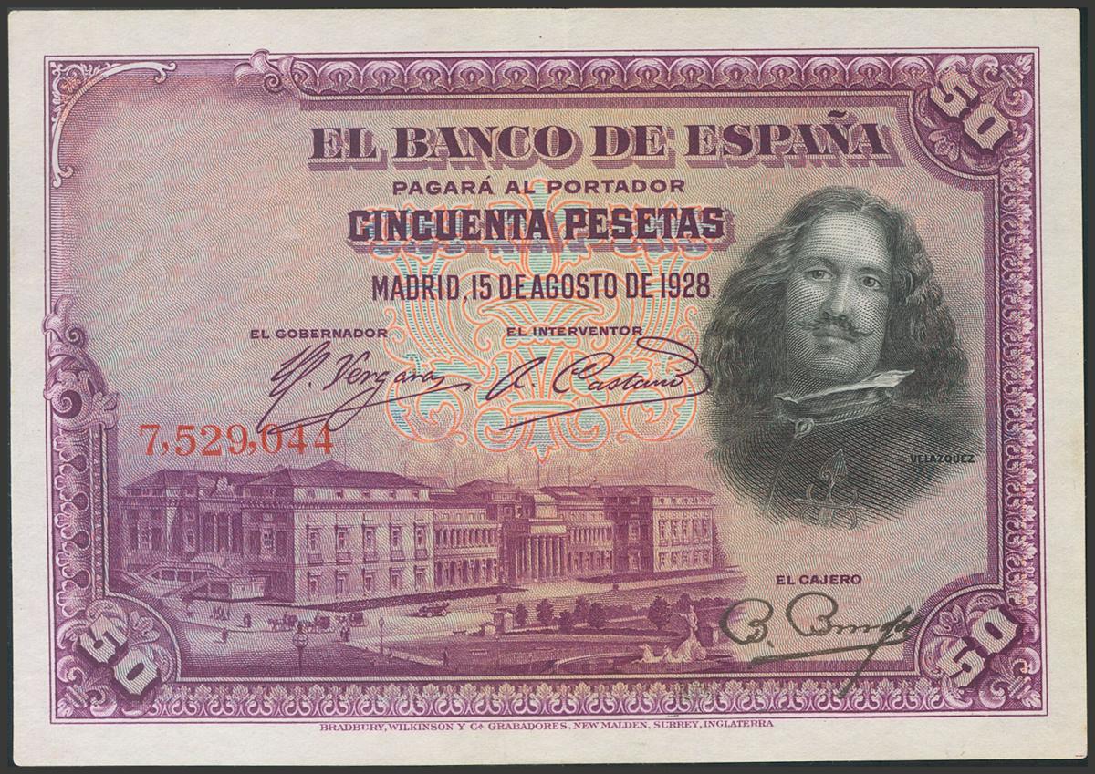 50 Pesetas. 15 de Agosto de 1925. Sin serie. (Edifil 2017: 329). Conserva parte del apresto original. EBC.