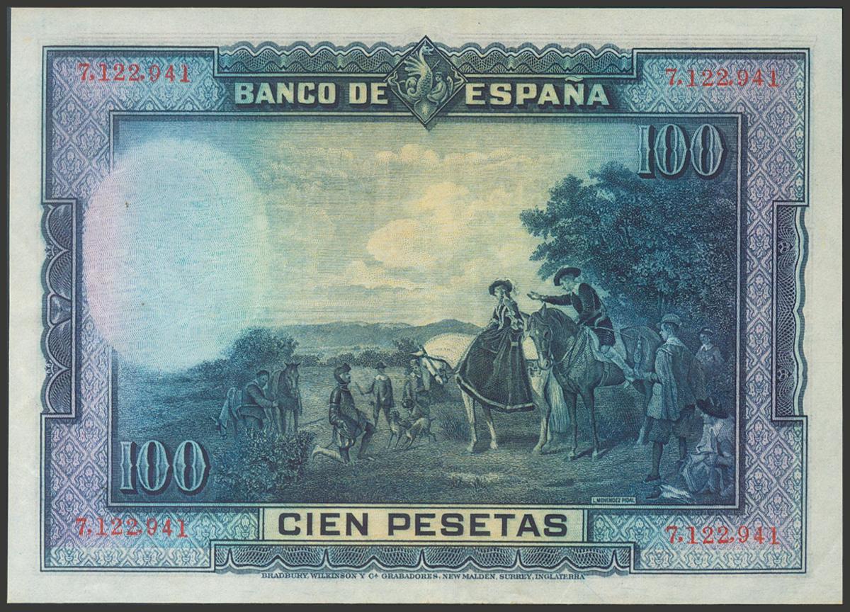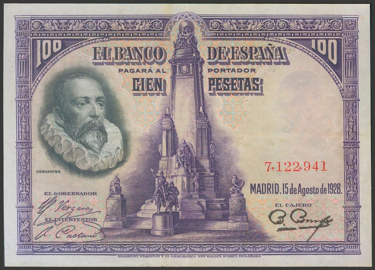 100 Pesetas. 15 de Agosto de 1928. Sin serie. (Edifil 2017: 355). Presenta parte del apresto original. MBC+.