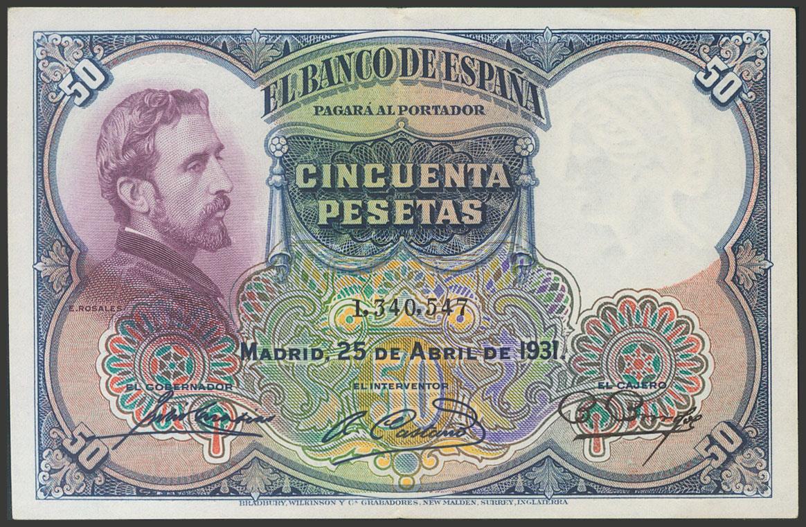 50 Pesetas. 25 de Abril de 1931. Sin serie. (Edifil 2017: 359). Conserva gran parte del apresto original. EBC.