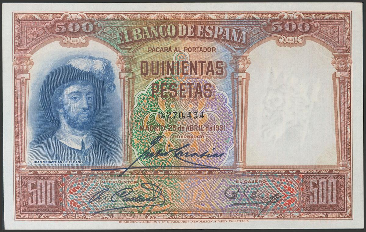 500 Pesetas. 25 de Abril de 1931. Sin serie. (Edifil 2017: 361). Conserva gran parte de su apresto original. EBC+.