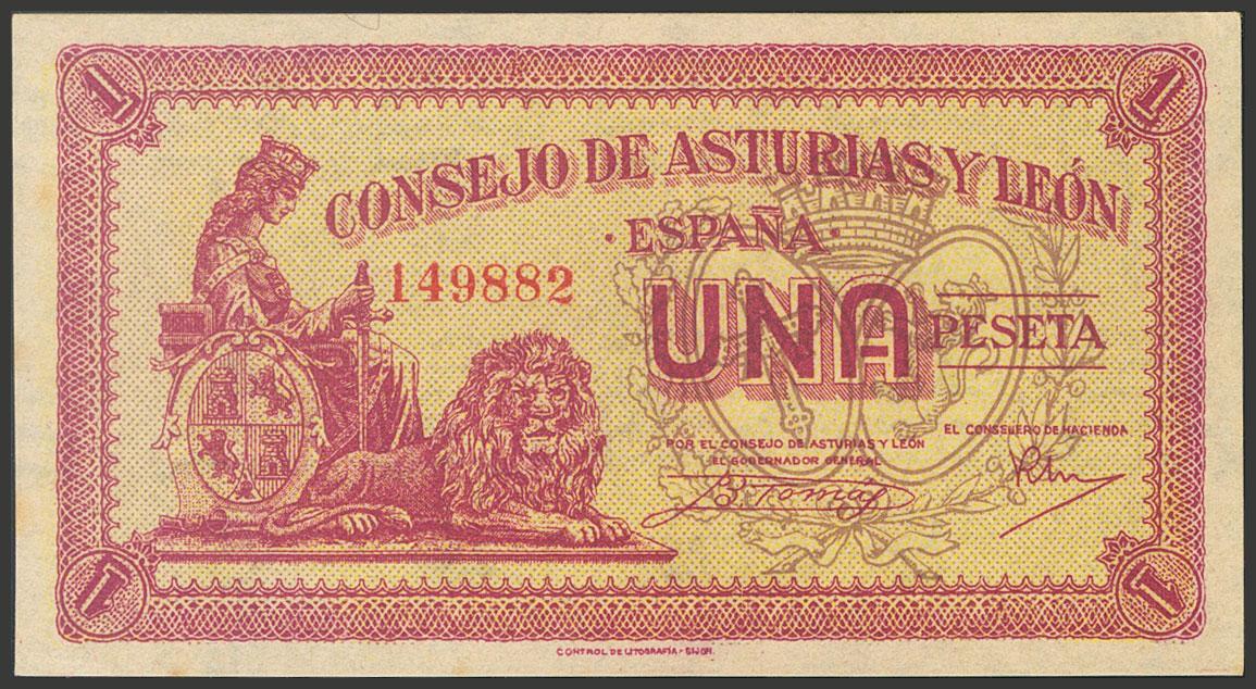 1 Peseta. 1937. Asturias y León. Sin serie. (Edifil 2017: 397). Apresto original. SC-.